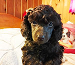 Очарование Ю Шокко Босс / Yu Shokko Boss, кобель, миниатюрный пудель коричневого окраса. Полностью привит, чипирован. Тест: PRA A (NORMAL/CLEAR). Малыш побывал на первой своей выставке - результат: Лучший бэбик в окрасе. Остается в питомнике.